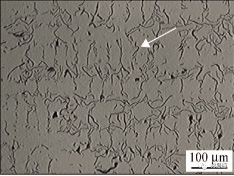 滲碳體在球墨鑄鐵中呈針狀、條狀或以萊氏體存在,易使球墨鑄鐵變脆,因此生產中應盡量避免其出現。