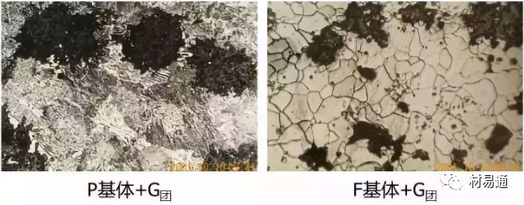 球墨鑄鐵的金相組織:G+F體、G+P體、G+F體+P體等,直接決定這球狀鑄鐵的力學性能。