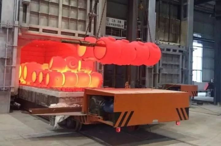 多用于碳含量較低的低硅、低磷、硫耐磨白口鑄鐵件,由于其合金元素的含量較高,碳化物難以溶解于奧氏體中。采用淬火處理(加熱溫度為9 50~1000℃)則使奧氏體中溶解更多的碳化物,冷卻后獲得較高硬度的馬氏體組織,從而確保了鑄鐵件有較好的耐磨性,為了減少內(nèi)應(yīng)力和避免開(kāi)裂,也可采用硝鹽分級(jí)淬火,最后在180~200℃的溫度下回火1~3h。