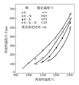 2  再加熱溫度對V、V-N、V-Ti、V-Ti-N鋼的晶粒粗化行為的影響