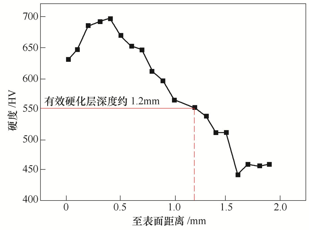 圖3 滲碳硬化層硬度梯度曲線