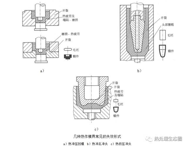 熱作模具主要包括熱鍛模、熱沖裁模、熱擠壓模、壓鑄模等。熱作模具工作時(shí)承受很大的沖擊載荷、強(qiáng)烈的摩擦,以及劇烈的冷熱循環(huán)引起的熱應(yīng)力和高溫氧化等,常出現(xiàn)變形及塌陷、斷裂、熱疲勞、熱磨損和腐蝕等失效形式。