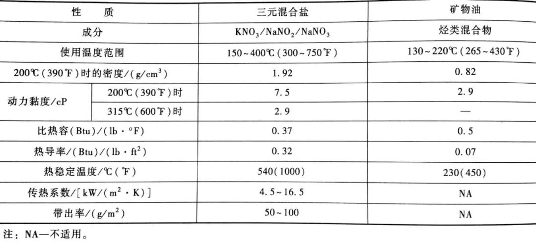 ▼表9 三元混合硝鹽浴與常用礦物油物理性能的對比