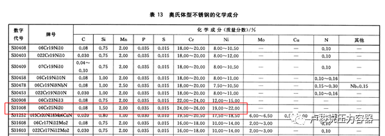 在室溫狀態(tài)下,奧氏體不銹鋼310基體組織為純γ。GB/T 24511-2017中其化學成分見下面的截圖,因其鉻、鎳的公稱含量分別為25%和20%,310又稱為“2520”。