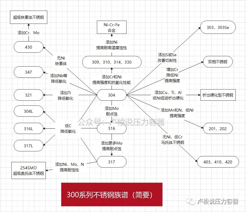 最后,附上我們之前發(fā)過的一張簡要的300不銹鋼族譜。