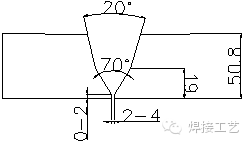 5.1.2 因本次評(píng)定使用的管材壁厚較大,應(yīng)設(shè)計(jì)合適的坡口型式,考慮減少坡口面積和焊接變形,同時(shí)提高焊接效率和減少Ni基焊材的消耗成本,決定采用圖1所示的坡口型式,間隙2~4mm,鈍邊0~2mm。