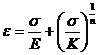 工程材料一般為硬化材料,可近似用Ramberg-Osgood模型描述