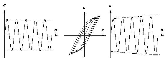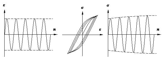 應(yīng)力控制下,循環(huán)硬化材料其應(yīng)變不斷減少;循環(huán)軟化材料其應(yīng)變不斷增加