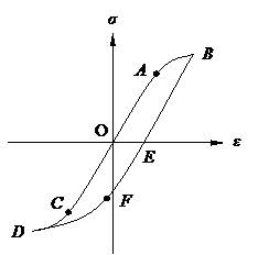圖示材料的拉伸和壓縮屈服點為A和C點,則在B點卸載后反向加載的屈服點F處應(yīng)力值要小于C點的應(yīng)力值。