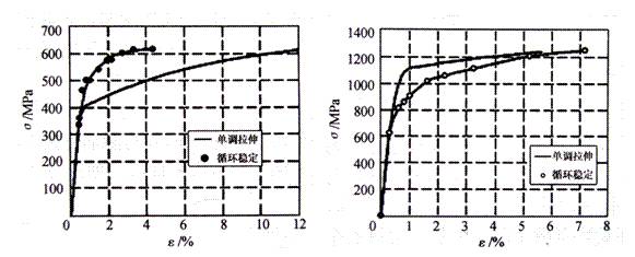穩(wěn)態(tài)循環(huán)應(yīng)力應(yīng)變曲線不同于單調(diào)應(yīng)力應(yīng)變曲線。