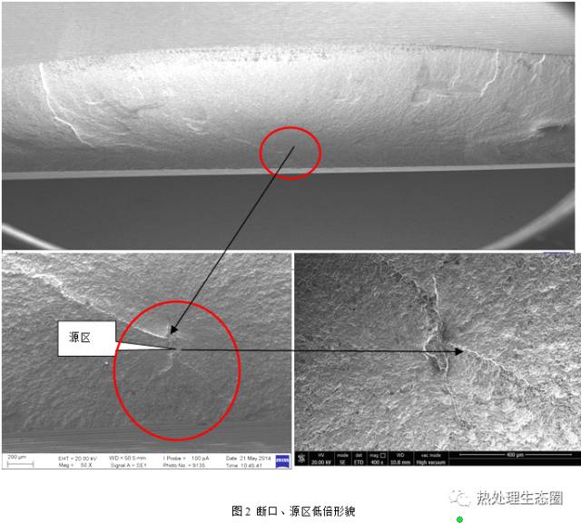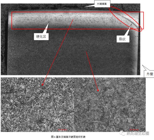 通過對(duì)產(chǎn)品端面裂紋的觀察與分析認(rèn)為,產(chǎn)品端面裂紋位于表面淬硬區(qū),開裂模式為脆性開裂,斷面未見明顯材料缺陷,開裂原因主要與加工應(yīng)力控制不當(dāng)有關(guān)。