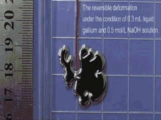 ▲液態(tài)金屬在石墨表面,電控逆重力攀爬現(xiàn)象