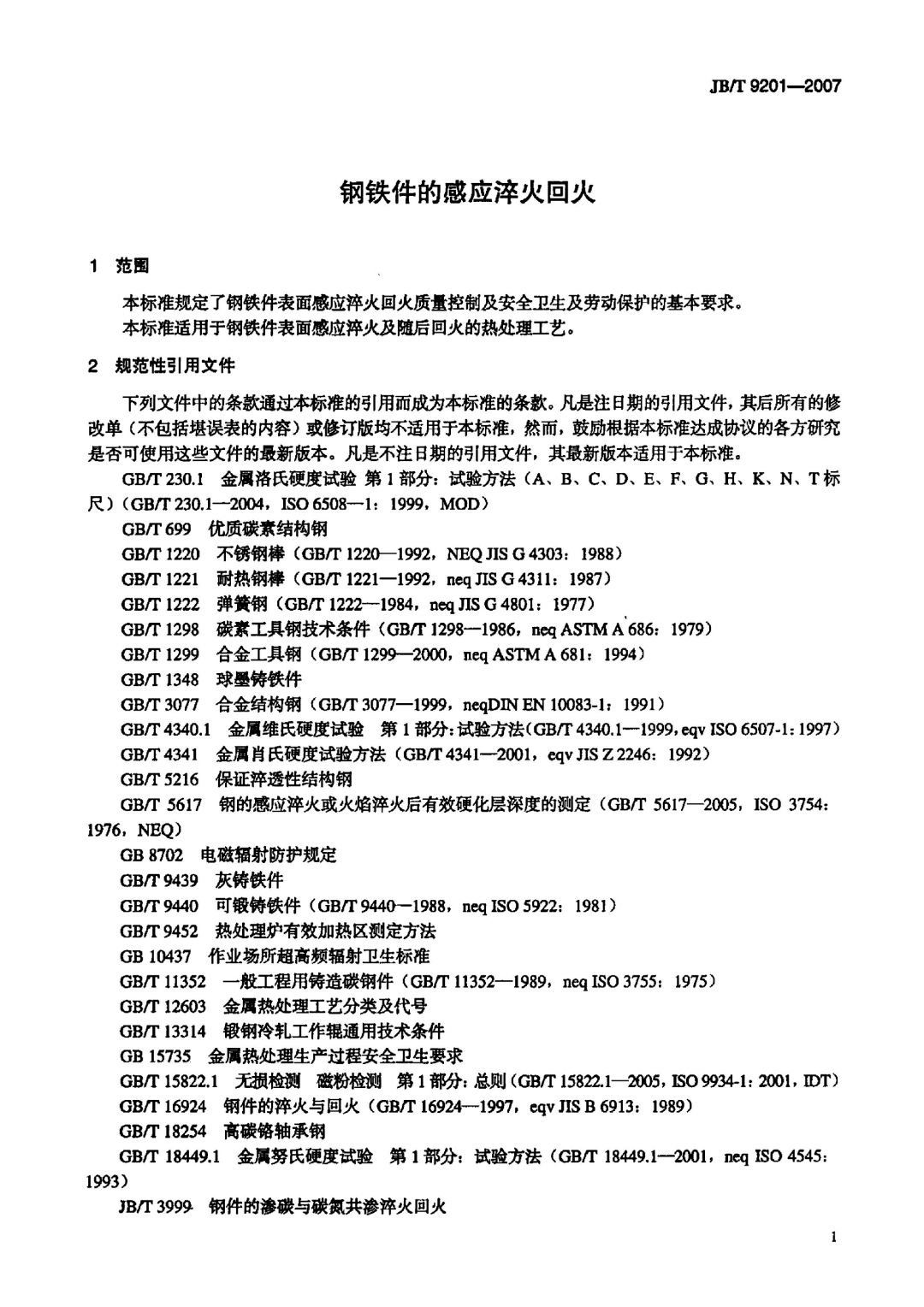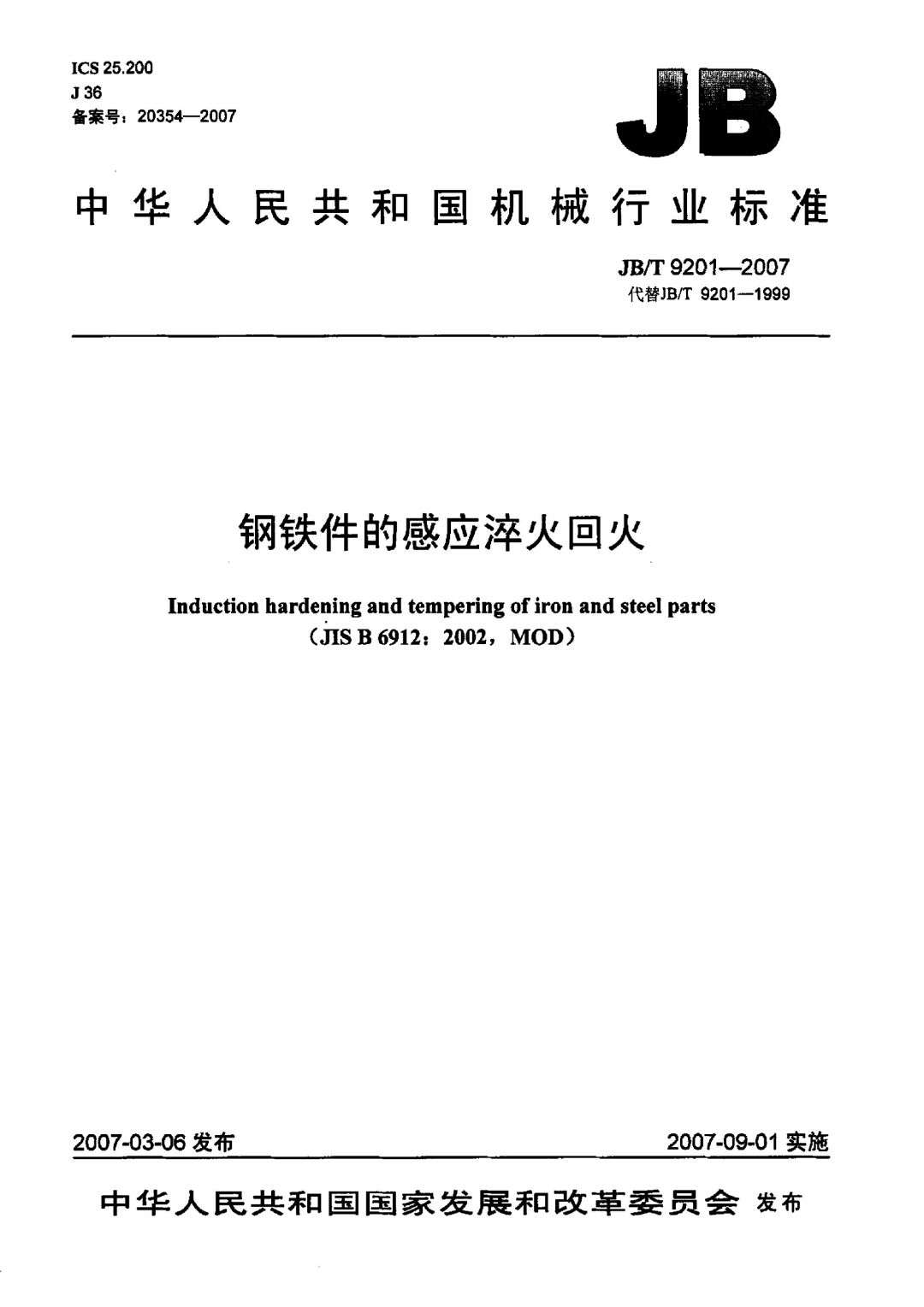 JBT9201-2007 鋼鐵件的感應淬火回火