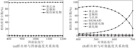 作者利用Thermo-calc軟件強大的相圖計算功能對材料的析出相類型和析出規(guī)律進行了預測,后通過XRD衍射分析儀和透射電子顯微鏡對材料的析出相進行觀察分析,驗證了計算的準確性。