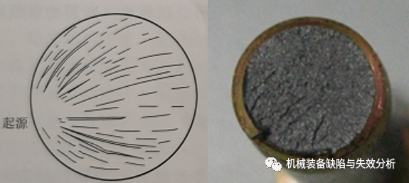 實際多晶體金屬斷裂時,主裂紋向前擴展,其前沿可能形成一些次生裂紋,這些裂紋向后擴展借低能量撕裂與主裂紋連接便形成人字紋。