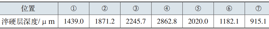 表4 淬硬層深度測試結果