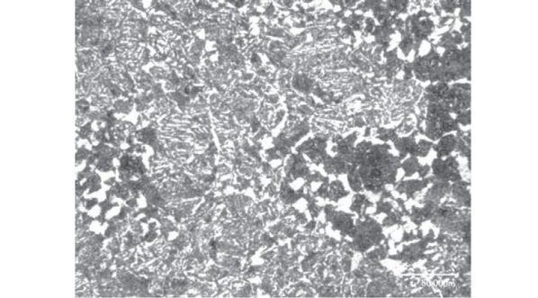 軸承內圈材料母材金相組織如圖14所示,其組織為塊狀鐵素體+回火索氏體。組織不均勻,并且鐵素體有呈網狀分布的趨勢。