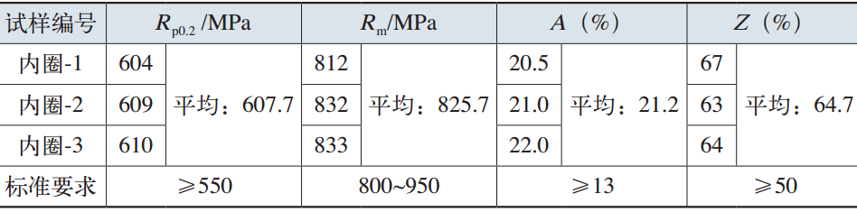 表6 變槳軸承內圈材料的室溫拉伸性能(20℃)
