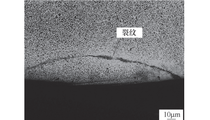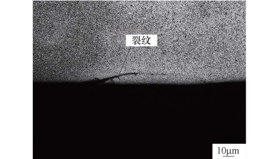 鍛造折疊裂紋缺陷是指在鍛造過程中金屬流動不合理導致鍛件表面形成重疊層,是鍛造加工過程中最常見的缺陷。杠桿鍛造折疊的形成可能是由于表面氧化皮或非金屬夾雜物在鍛打時被壓入鋼體內,或是鍛造拔長時速度過快造成的。若折疊很淺且在加工面,則可通過切削加工加以消除;若折疊很深且在非加工面上,那么它對零件性能的影響是嚴重的,是一種不允許的鍛造缺陷。建議改進桿件的模鍛工藝,定期清理鍛造設備表面毛刺和氧化皮,加強對杠桿表面夾雜物的檢測,以及鍛造時合理控制拔長速度,均為預防折疊缺陷的有效手段。