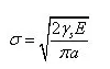 這就是著名的格里菲斯斷裂判據(jù),其中,G為裂紋尖端能量釋放率,γs是表面自由能(材料每形成單位裂紋面積所需能量)。由此關(guān)系可得格里菲斯裂紋應(yīng)力和裂紋尺寸關(guān)系: