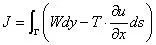 用于研究平面問題,它代表與裂紋擴展有關(guān)的能量。式中右側(cè)第一項是與應(yīng)變能有關(guān)的能量,其中,W是應(yīng)變能的密度(即單位體積應(yīng)變能)。在彈塑性情況下,為單調(diào)加載過程中試件各處體元所接受的應(yīng)力變形功密度(包括彈性應(yīng)變能和塑性變形功)。第二項是ds上面力分量;ds是路徑Γ 上的弧元。