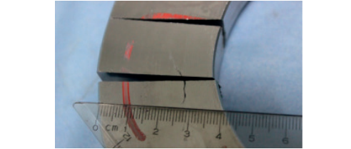 如附表所示,廢品零件化學成分符合標準要求,不是導致零件產生裂紋的原因。
