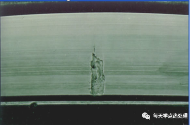 在出現蝕損斑后如未及時發現,它會沿循環方向呈V型擴展,越來越大,導致軸承失效