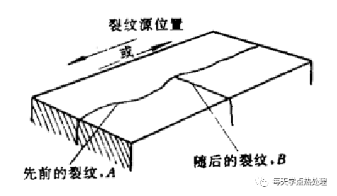 ③變形法:裂紋在張開并變形過程中,變形量大的部位為主裂紋,其它部位為二次裂紋(適用于延性斷裂)。
