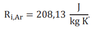 公式里有氣體密度ρ,靜壓p,溫度T,單個(gè)和通用氣體常數(shù)Ri, R和分子重量M,對(duì)于氬氣單個(gè)氣體闡述由下式給定:
