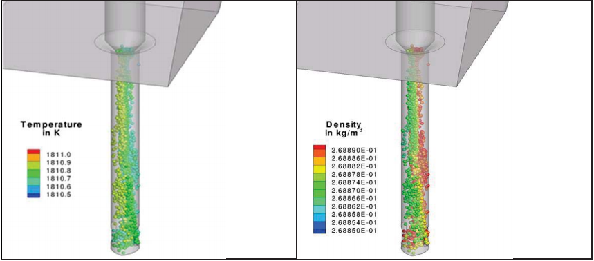 對(duì)于宏觀尺度的模擬,BFI關(guān)注的是整體流動(dòng)中夾雜物和氣泡的動(dòng)態(tài)行為和他們輸送因?yàn)椋m當(dāng)進(jìn)行處理氣相外,還考慮了夾雜物的團(tuán)聚現(xiàn)象,這里應(yīng)用了一個(gè)凝聚模型,總體上看,它是采用了一種基于歐拉-拉格朗日方法的粒子跟蹤方法,計(jì)算每個(gè)計(jì)算步驟的粒子軌跡,然后從流單元中所有粒子的粒子特性和速度的平均值生成一個(gè)可能的碰撞伙伴。