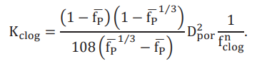 對(duì)堵塞材料的解剖分析表明,堵塞區(qū)域是由多孔網(wǎng)絡(luò)構(gòu)成的分支結(jié)構(gòu),并非均勻布置,存在一些直徑為Dpor的大孔。用以下參數(shù)描述堵塞:氧化鋁顆粒直徑dp、堵塞的平均固體體積分?jǐn)?shù)和多孔網(wǎng)絡(luò)中開(kāi)孔直徑dpp,堵塞物的滲透性是由公式7計(jì)算: