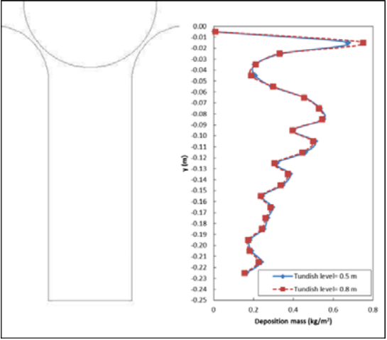 圖113 兩個(gè)中間包鋼水液面高度夾雜物顆粒沉積質(zhì)量(UNILEOB-SMMP)