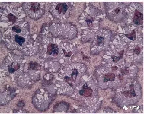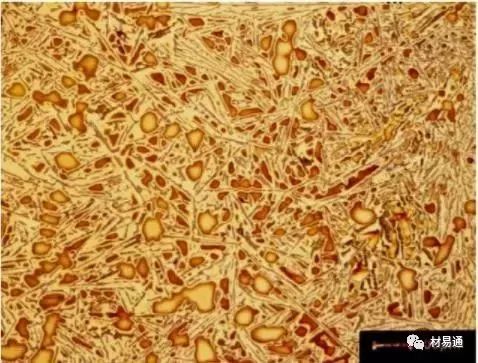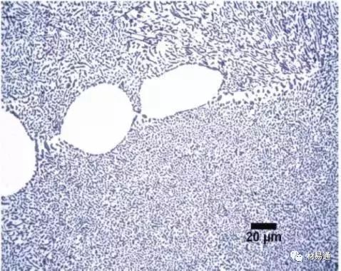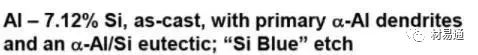 Al-1%Si 鑄造合金樣品,在初生α鋁基體中可見硅粒子。