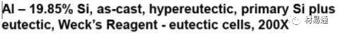Al-19.85%Si,鑄造,過共晶,初生Si加共晶