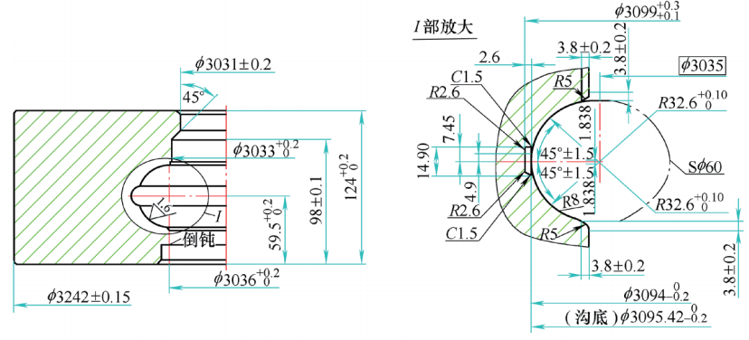 應用西門子840D SL系統自帶的Probe探頭功能完全取代老式人工找位置方式,尤其是風力發電轉盤軸承行業,工件尺寸大,以人工找位置方式可能造成很大誤差,而通過探頭測試可以實現精準、重復度很高的測量,對批量的一致性有很高的保障。系統模擬量處理程序,系統讀取模擬量,通過NC程序比較模擬量時間值和標準值的偏差來補償伺服軸,以實現快速響應,避免了以往通過PLC處理類似功能的大量掃描時間,從而大幅縮短了跟蹤補償的響應時間,使最終工藝結果保證在0.1mm誤差范圍之內。