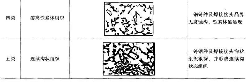 草酸腐蝕后的晶界形態分為五類,見表5。在500倍金相顯微鏡下觀察,蝕坑(或凹坑)形態分為兩類,見表6。草酸篩選試驗與其他試驗方法的關系見表7。