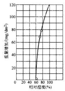 當金屬表面溫度低于環境溫度時,此時空氣中的水蒸氣將凝結在金屬表面上,這種現象稱為結露。各種金屬都有一個腐蝕速率開始急劇增加的濕度范圍,把這個