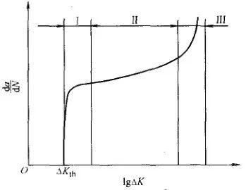 第Ⅱ階段是da/dN與ΔK成線性關系,即