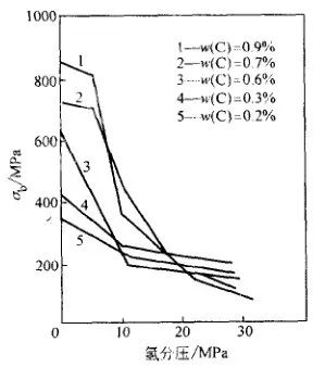 氫脆一般發生在屈服強度大于620MPa的高強度鋼及Ti、Ta等高強度材料中。氫對材料的伸長率及斷面收縮率有顯著影響,但對屈服強度的影響不大。氫對低強度鋼的影響不僅降低塑性,也降低斷裂應力(σF) 。
