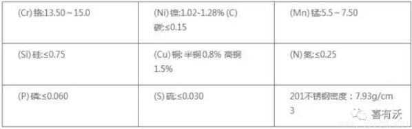 4、 201是含錳較高,表面很亮帶有暗黑的亮,含錳較高容易生銹。304含鉻較多,表面呈現(xiàn)啞光,不生銹.兩種放在一起就有比較了。最重要的就是耐腐蝕性能不同,201的耐腐蝕性能很差,所以價(jià)格就要便宜很多.又因?yàn)?01含鎳低,所以價(jià)格比304的低,于是耐腐蝕性能就不如304的了。