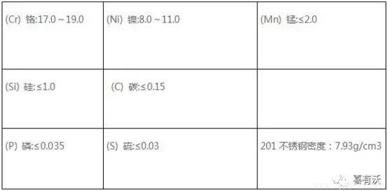 201不銹鋼牌號:1Cr17Mn6Ni5N。304不銹鋼牌號:06Cr19Ni10(或者0Cr18Ni9)。
