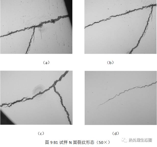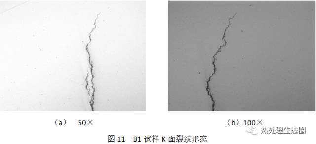 B1試樣壁厚方向磨拋后,其裂紋形態(tài)如圖11所示。
