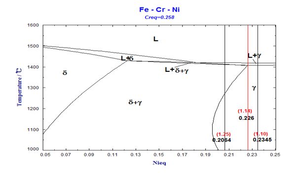 圖1 25.8%Cr時的Fe-Ni-Cr相圖