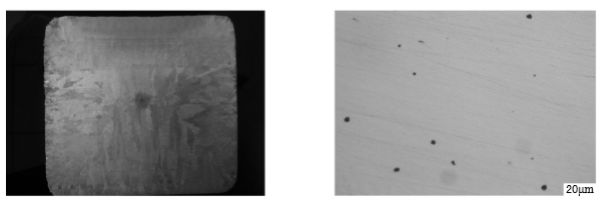 圖3 904L鑄態(tài)低倍組織 圖4 904L鑄坯中夾雜物分布