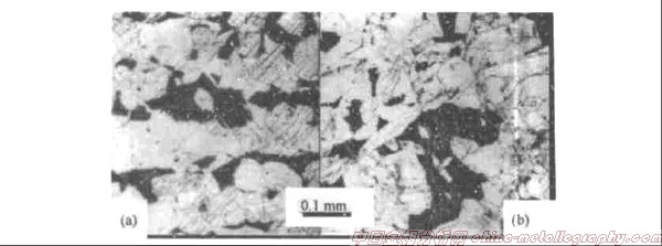 熱軋低碳鋼、中碳鋼在緩冷過程中會出現先共析鐵素體和珠光體交替相間的顯微組織帶狀,這些不同的組織是固態相變的產物。這種帶狀組織稱為二次帶狀。二次帶狀的形成意味著碳在固態相變中發生了不均勻的重新分布,稱為二次碳偏析。一般所謂鋼中的帶狀組織,也即上述觀察到的帶狀組織即為二次帶狀組織。