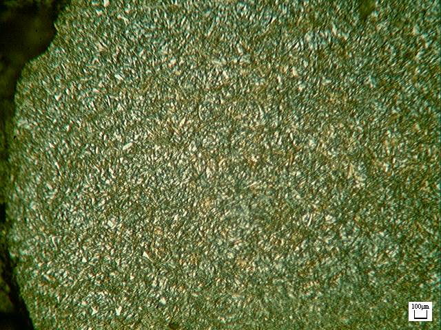金相組織檢測(cè)表層馬氏體組織中,殘留奧氏體的含量最多為:10%~15%;組織表面應(yīng)是天鵝絨狀的細(xì)紋晶粒、發(fā)暗,晶粒周圍不得有滲碳體;根據(jù)UNI3245,奧氏體晶粒大小5-8級(jí);表面脫碳的氧化層和屈氏體痕跡的最小層厚度(非馬氏體區(qū)域)允許最大15~20μm。