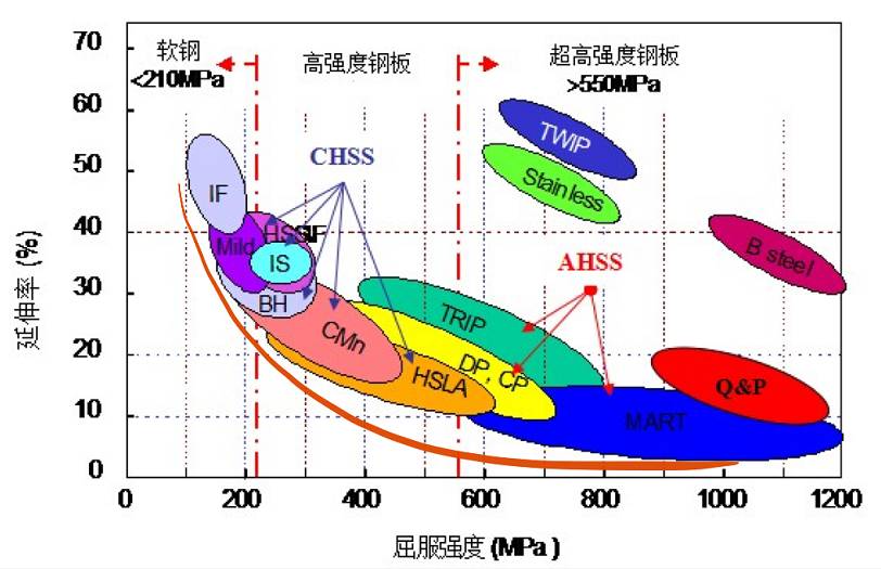 汽車用鋼要具有一定的塑性,以滿足成形要求。理想狀態當然是希望隨著強度提高,仍能保持一定的延伸率。
