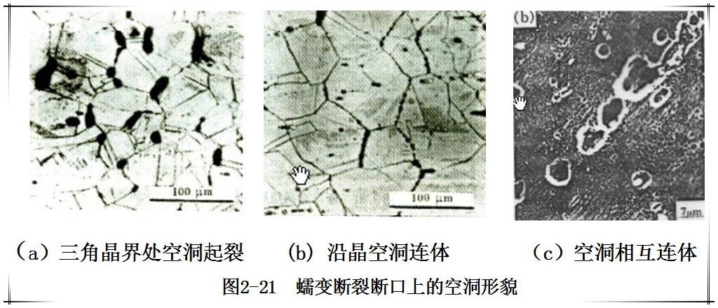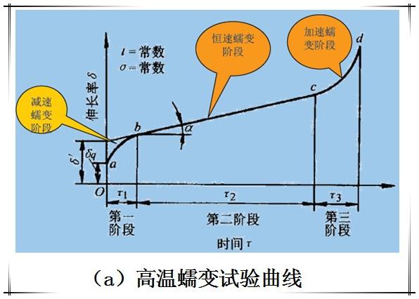 材料的蠕變過程可用蠕變曲線描述。典型的蠕變曲線如圖2-22所示。圖中AB段為第一階段,稱減速蠕變階段,這一階段開始蠕變速率增大,隨著時間的延長,蠕變速率逐漸減小。BC段為第二階段,稱為恒速蠕變階段,這一階段蠕變速率幾乎保持不變。通常蠕變速率就是以這一階段的變形速率來表示。CD段是第三階段,稱為加速蠕變階段,至D點時產生蠕變斷裂。