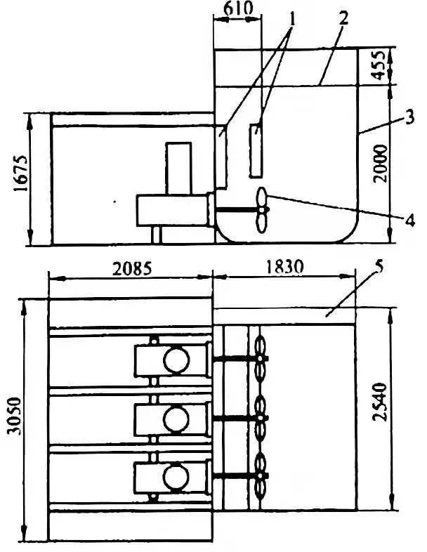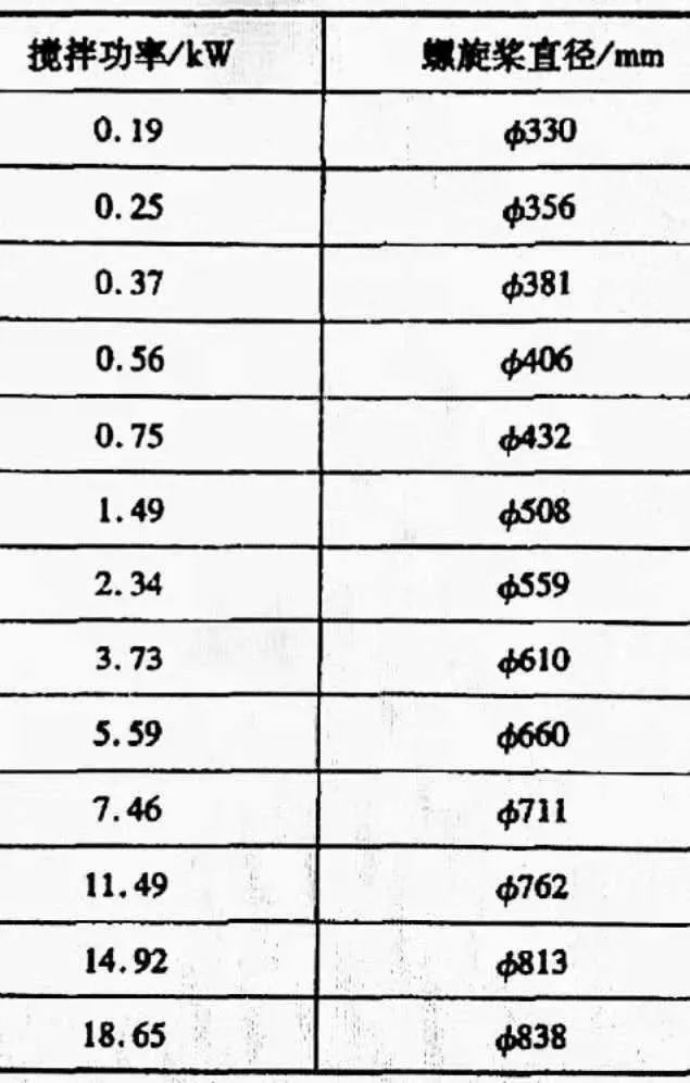 ④當采用閉式攪拌時,螺旋槳直徑要減小3%。