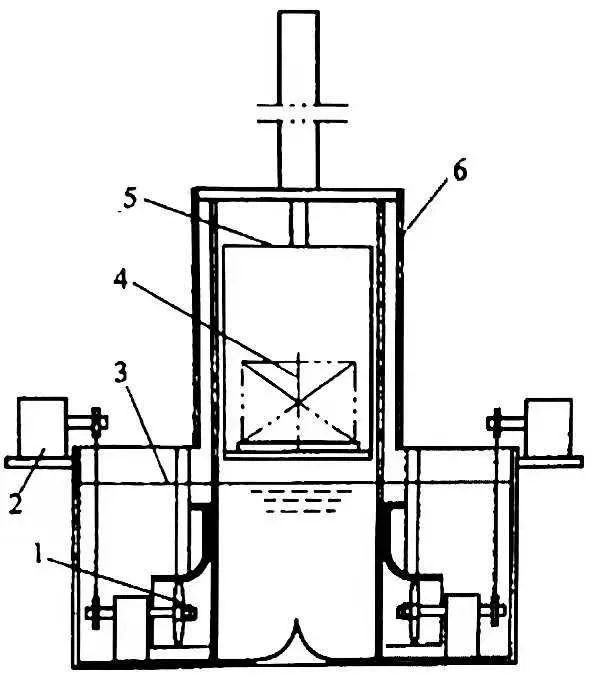1-均流板 2-導流筒 3-螺旋槳 4-攪拌器 5-工件 6-淬火槽